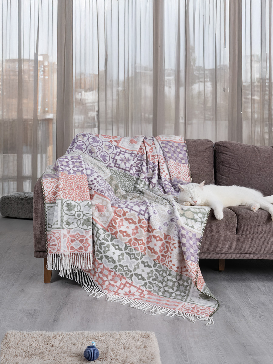 - Jest wytrzymały: Dodatek akrylu wzmacnia włókna. Duży koc jest często naciągany i intensywnie użytkowany – dzięki akrylowi zachowuje fason i nie deformuje się w praniu.
