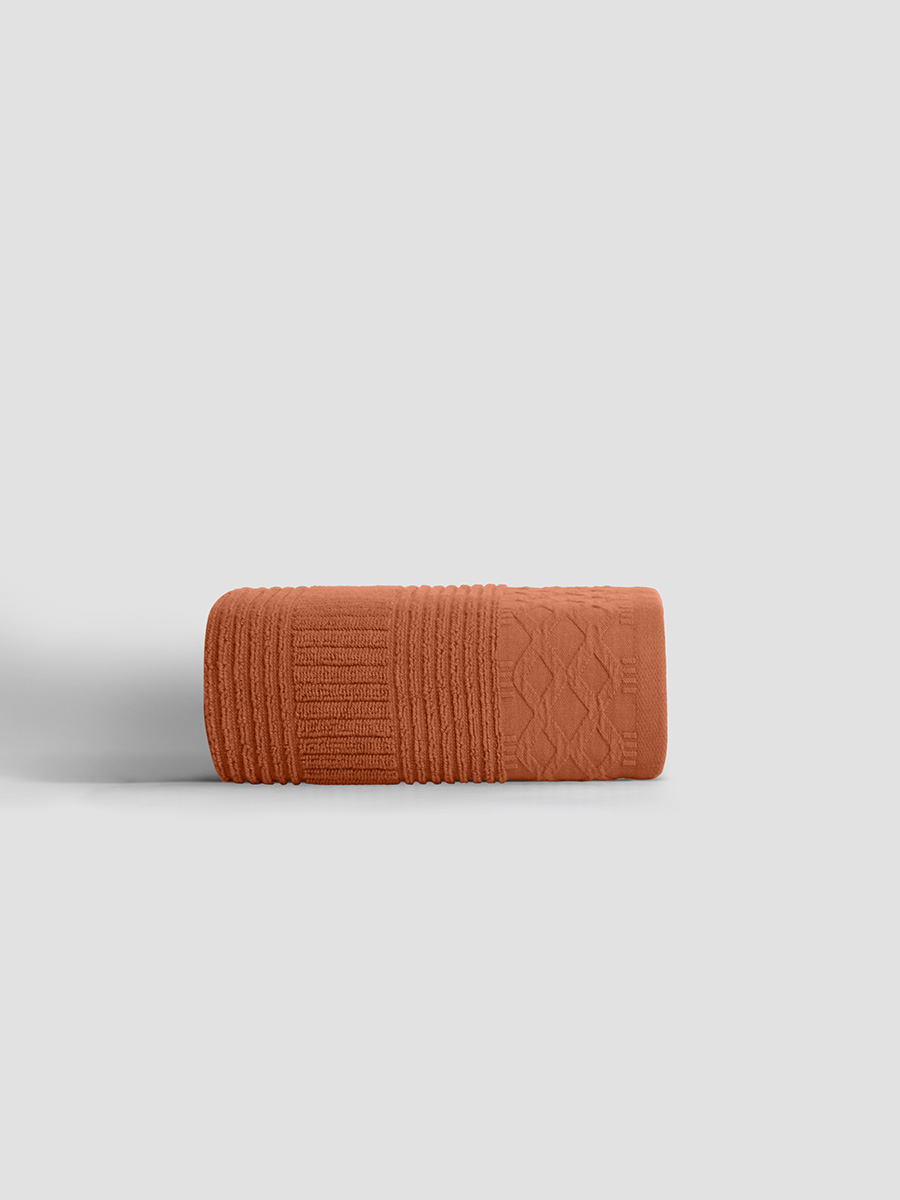 Jego wyjątkowy charakter podkreślają eleganckie żakardowe zdobienia. Ten misternie utkany wzór jest niezwykle trwały i dodaje ręcznikowi szlachetnego wyglądu, czyniąc go stylowym dopełnieniem każdej łazienki. To wybór dla tych, którzy cenią sobie połączenie funkcjonalności z wyrafinowanym designem.