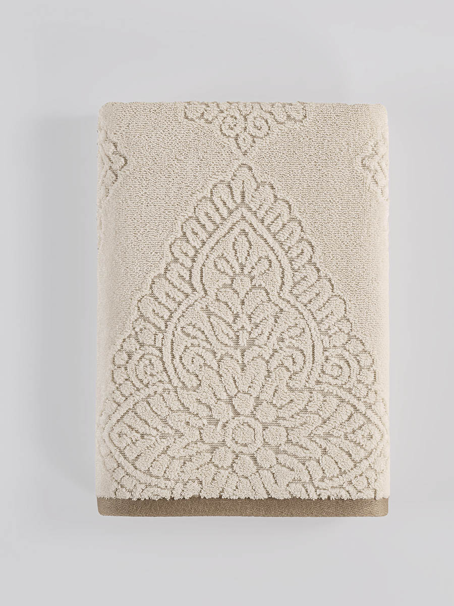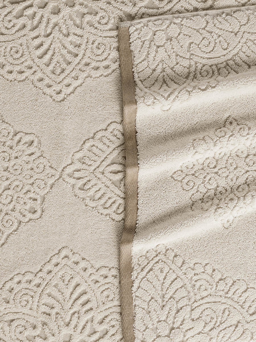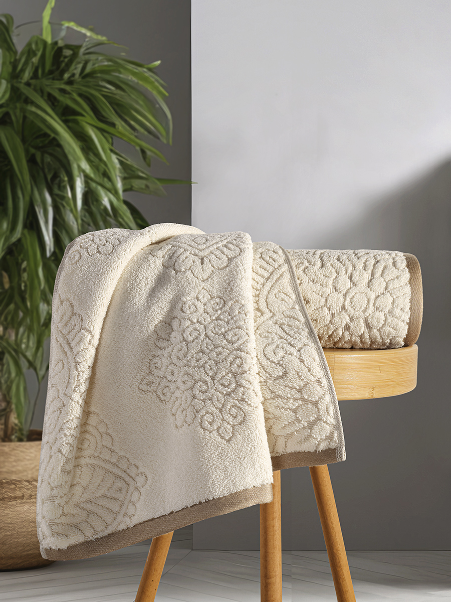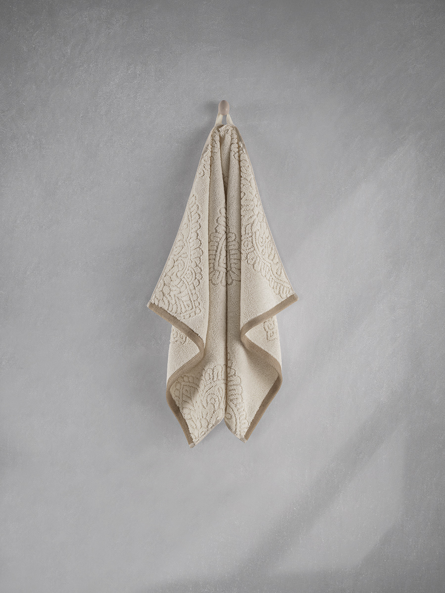 Ręcznik bawełniany VANCE to synonim luksusu i wyrafinowanego gustu, zaprojektowany z myślą o niezwykłych, codziennych doznaniach. Jego wyjątkowość tkwi w kunsztownym, głęboko tłoczonym wzorze, który tworzy na powierzchni tkaniny trójwymiarową, żakardową strukturę. Bogata ornamentyka, inspirowana pałacowym zdobnictwem, sprawia, że ręcznik staje się nie tylko praktycznym dodatkiem, ale prawdziwą, elegancką ozdobą łazienki.Wykonanie ze 100% starannie wyselekcjonowanej bawełny premium gwarantuje aksamitną miękkość i jest niezwykle delikatne dla skóry. Wysoka gramatura 520 g/m² zapewnia uczucie przyjemnego otulenia, wyjątkową puszystość oraz błyskawiczną chłonność, skutecznie osuszając ciało. To idealny wybór dla tych, którzy nie akceptują kompromisów między funkcjonalnością a wyszukaną estetyką, pragnąc nadać swojemu wnętrzu prestiżowy charakter.