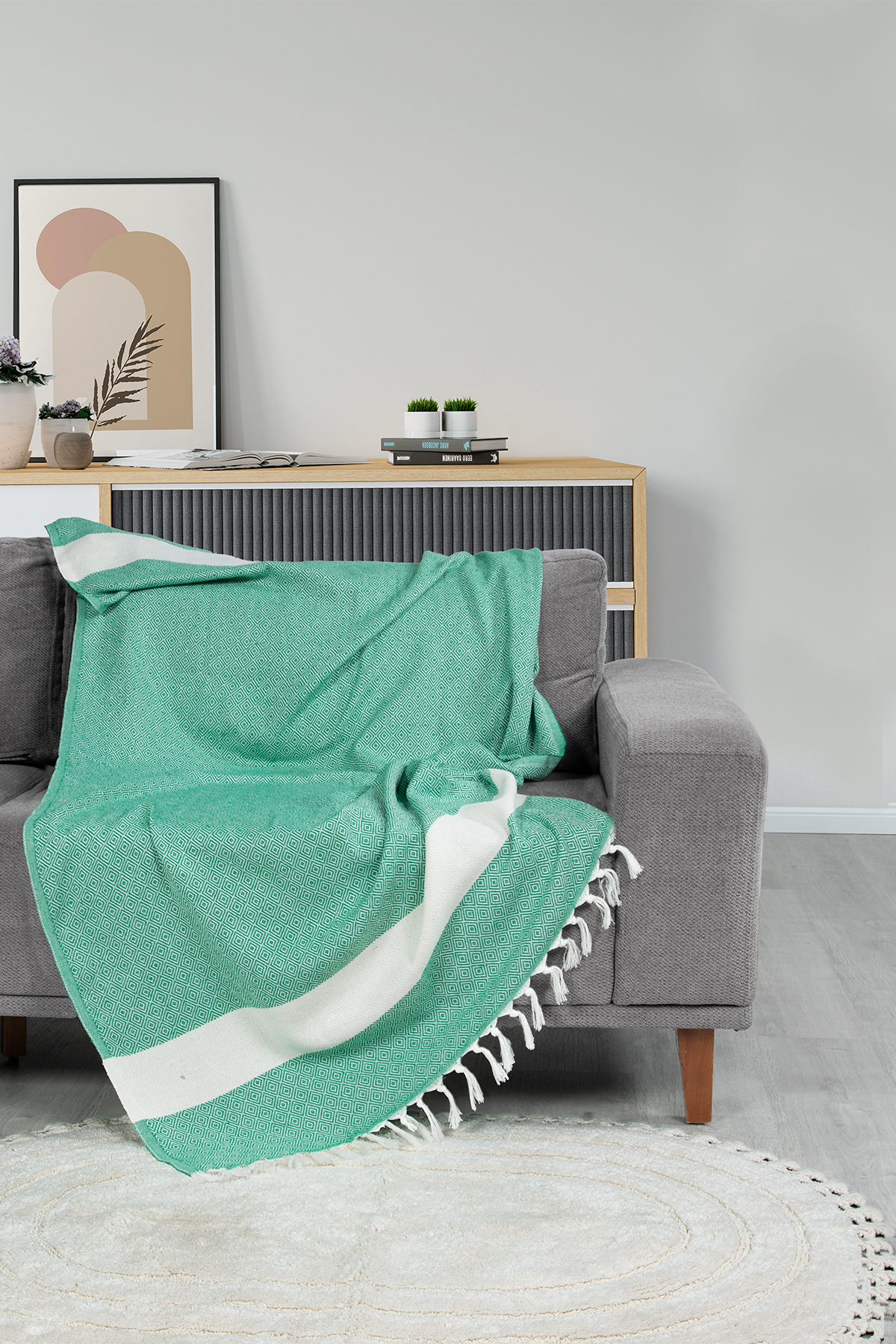 Wszechstronny ręcznik ELMAS wykonany w 100% z bawełny. Jego imponujący rozmiar 70x190 cm sprawia, że idealnie sprawdzi się jako stylowa narzuta na leżak, piknikowy koc, a nawet jako designerska dekoracja Twojego wnętrza.
