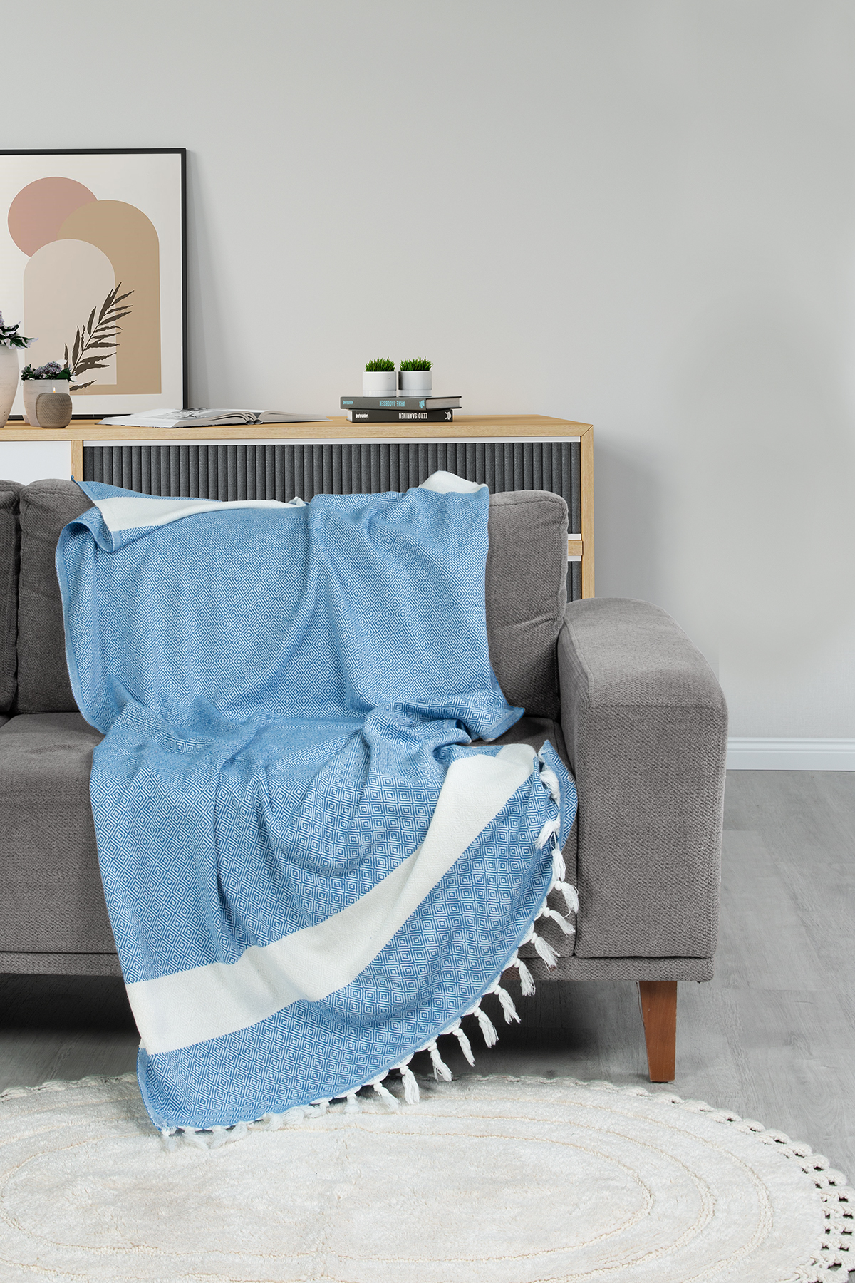Wszechstronny ręcznik ELMAS wykonany w 100% z bawełny. Jego imponujący rozmiar 70x190 cm sprawia, że idealnie sprawdzi się jako stylowa narzuta na leżak, piknikowy koc, a nawet jako designerska dekoracja Twojego wnętrza.