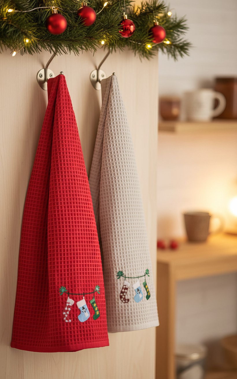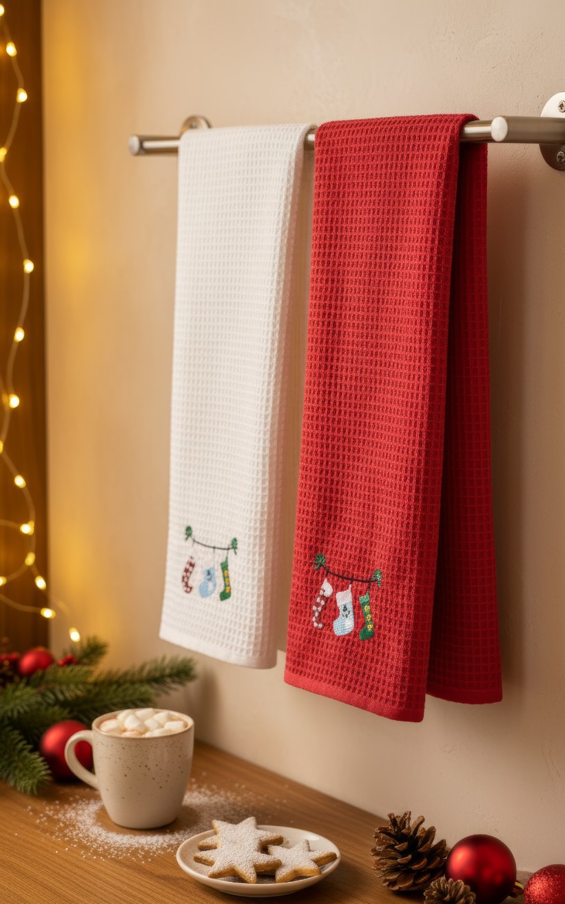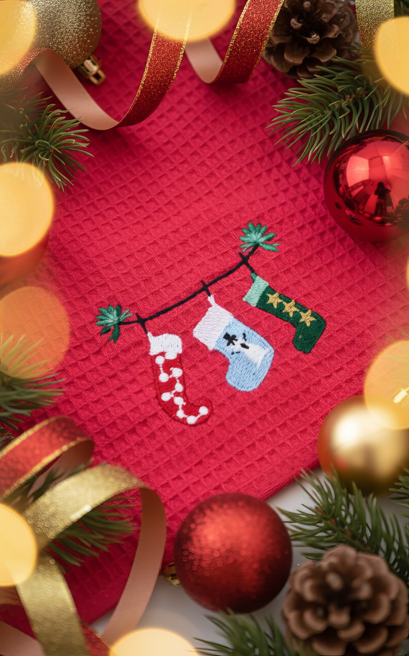Wprowadź do swojej kuchni wyjątkowy, świąteczny nastrój dzięki naszemu zestawowi dwóch ściereczek, które łączą w sobie walory użytkowe z piękną dekoracją. Ten komplet to doskonały sposób na szybką zmianę aranżacji wnętrza i nadanie mu przytulnego, zimowego charakteru. Zamiast nietrwałych nadruków, ozdobą produktu jest elegancki, precyzyjnie wykonany haft, który prezentuje się niezwykle szlachetnie i pozostaje nienaruszony nawet po wielokrotnym praniu, ciesząc oko przez długi czas.