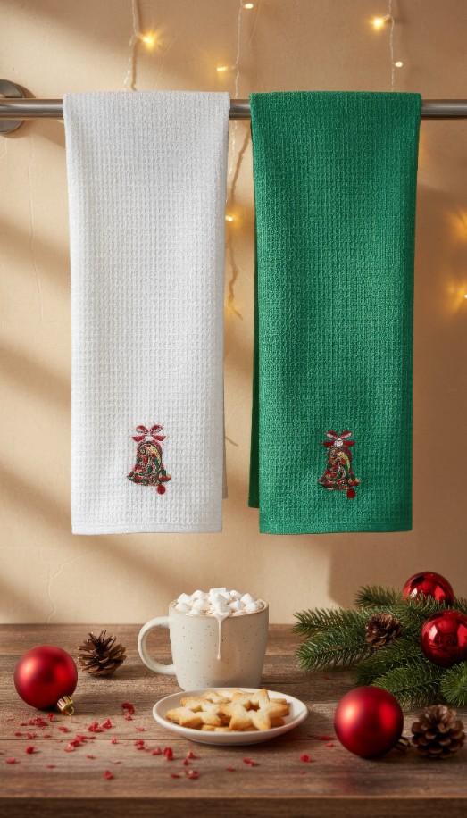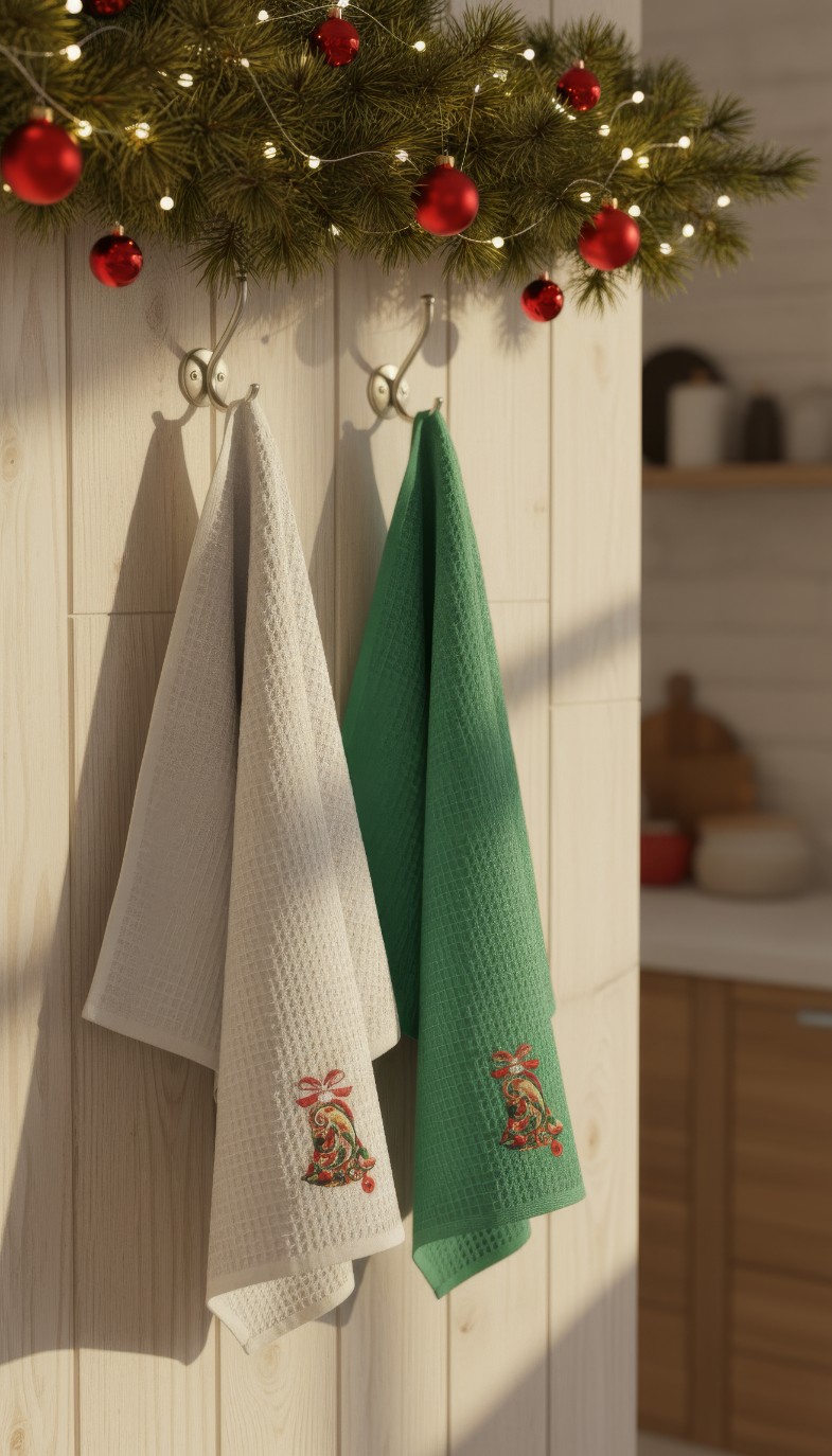 Wprowadź do swojej kuchni wyjątkowy, świąteczny nastrój dzięki naszemu zestawowi dwóch ściereczek, które łączą w sobie walory użytkowe z piękną dekoracją. Ten komplet to doskonały sposób na szybką zmianę aranżacji wnętrza i nadanie mu przytulnego, zimowego charakteru. Zamiast nietrwałych nadruków, ozdobą produktu jest elegancki, precyzyjnie wykonany haft, który prezentuje się niezwykle szlachetnie i pozostaje nienaruszony nawet po wielokrotnym praniu, ciesząc oko przez długi czas.