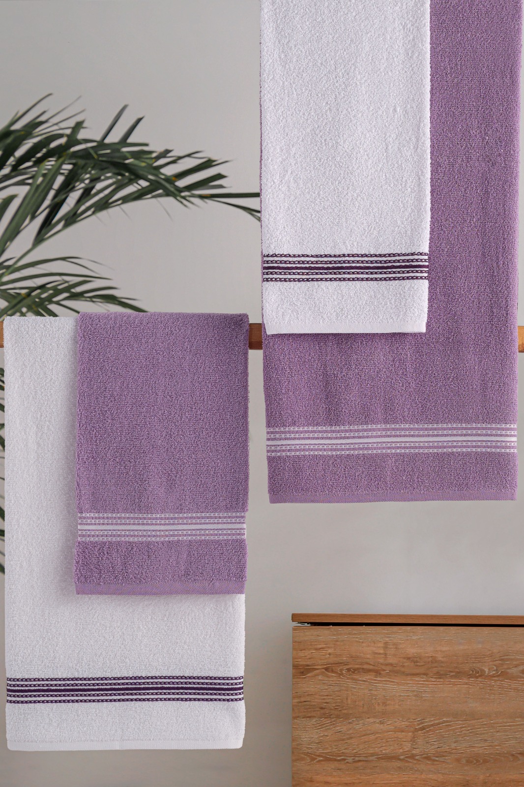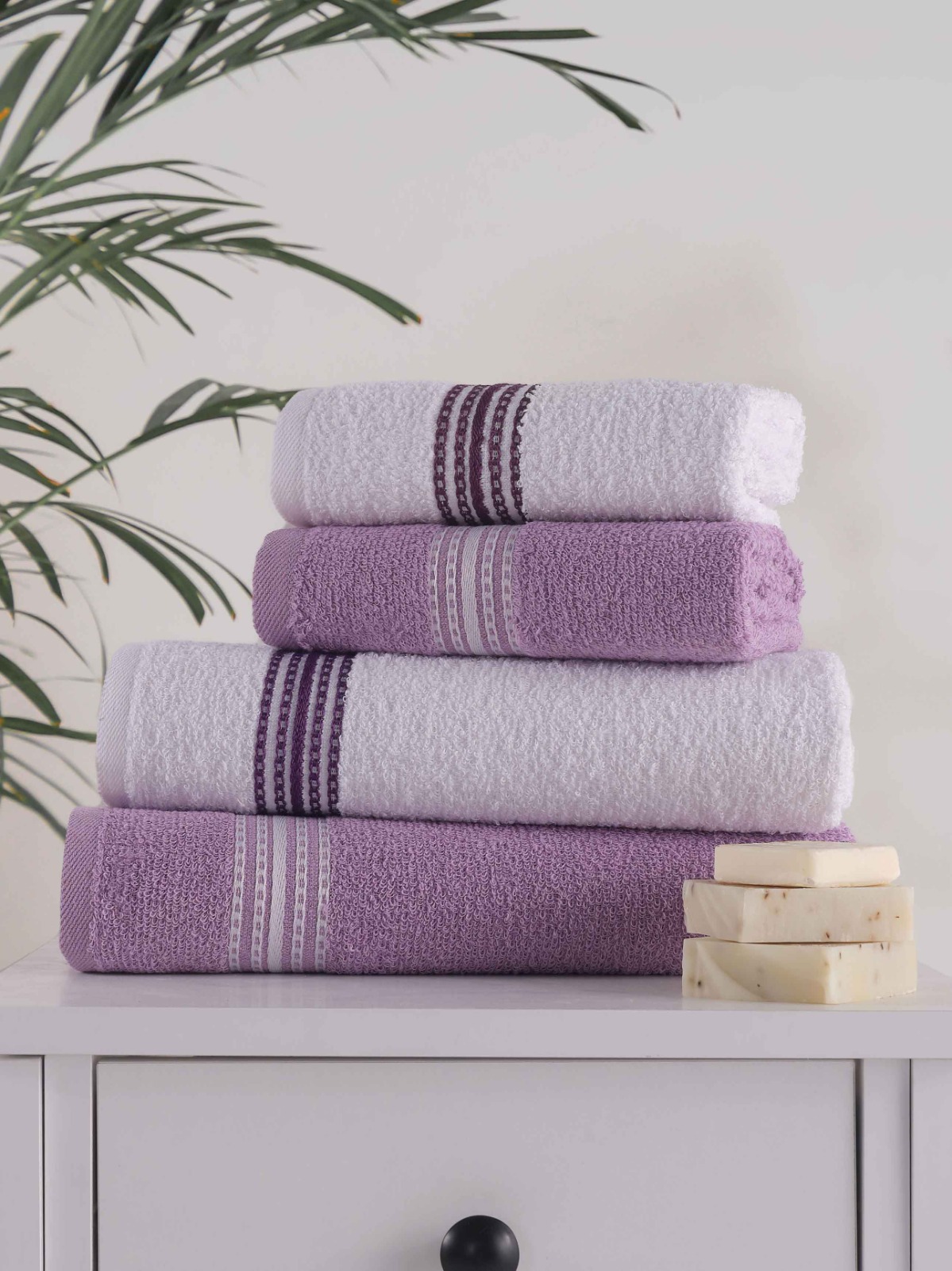 Prezentowany zestaw składa się z 4 ręczników: 2 x 50x90 cm + 2 x 70 x 140 cm