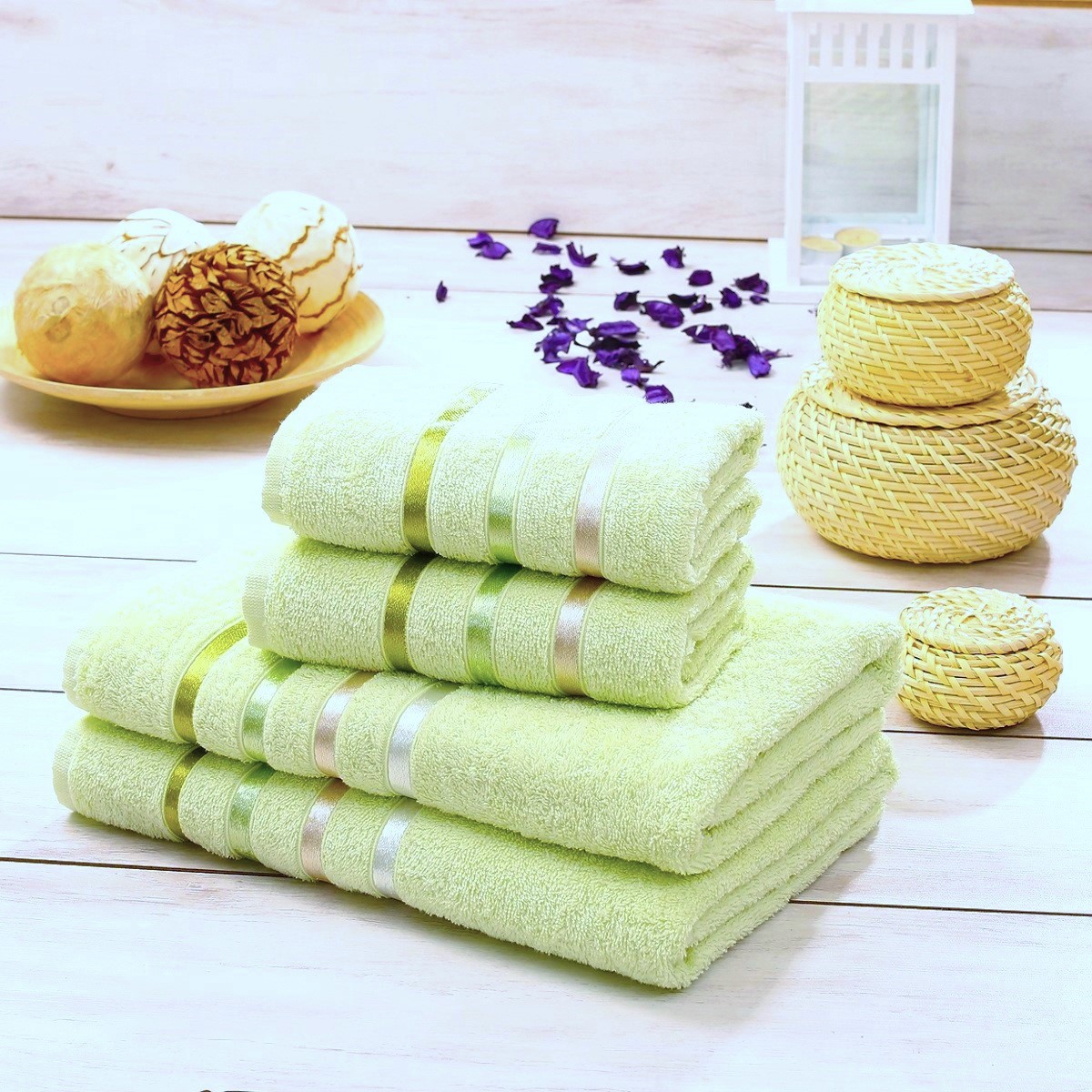 Zestaw składa się z czterech ręczników, po dwie sztuki o rozmiarach 50x80cm i 70x140cm