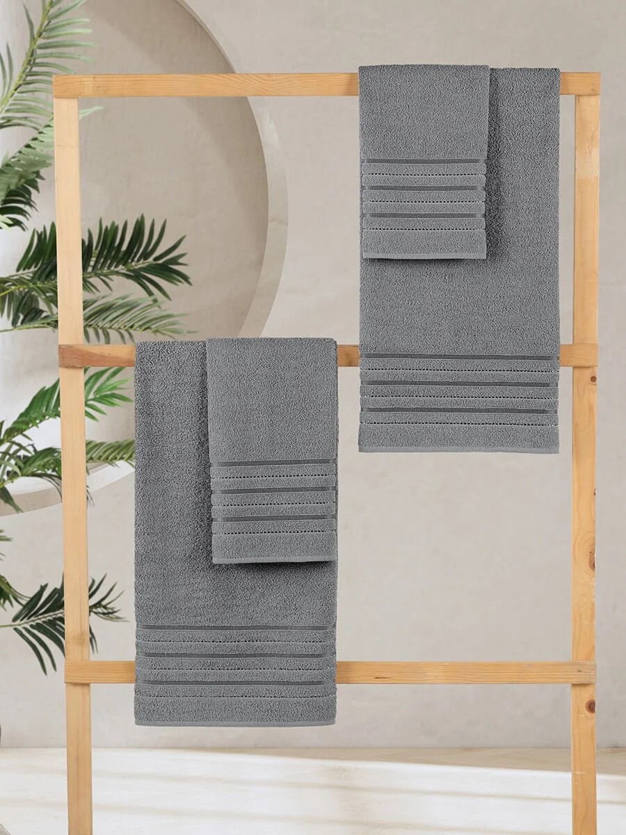Oferowany zestaw zawiera 4 ręczniki - po 2 sztuki w rozmiarze 50x90cm i 70x140cm