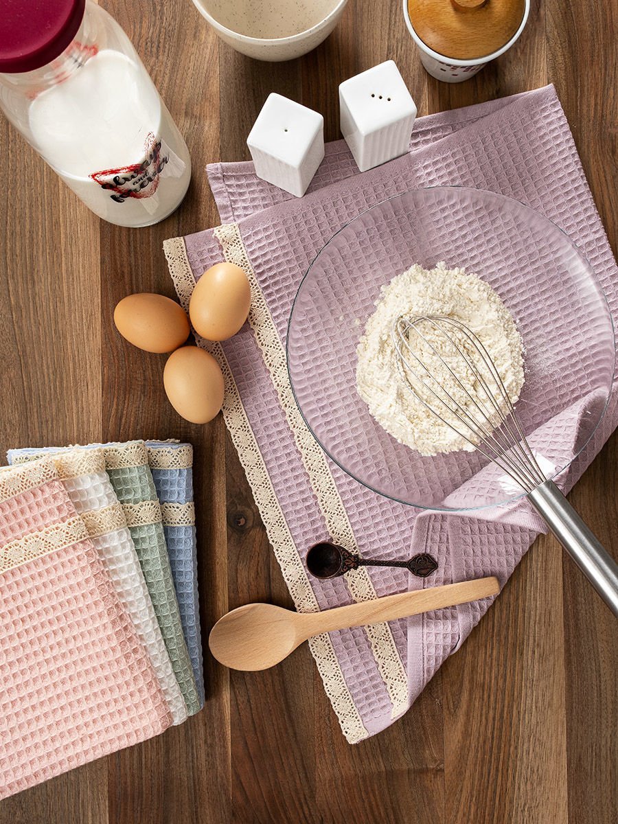 Ściereczki waflowe z gipiurą to nie tylko praktyczne narzędzia do codziennego sprzątania, ale także eleganckie dodatki do wnętrza. Ich subtelną, ozdobną krawędzią w postaci gipiury ożywisz swoją kuchnię czy łazienkę.